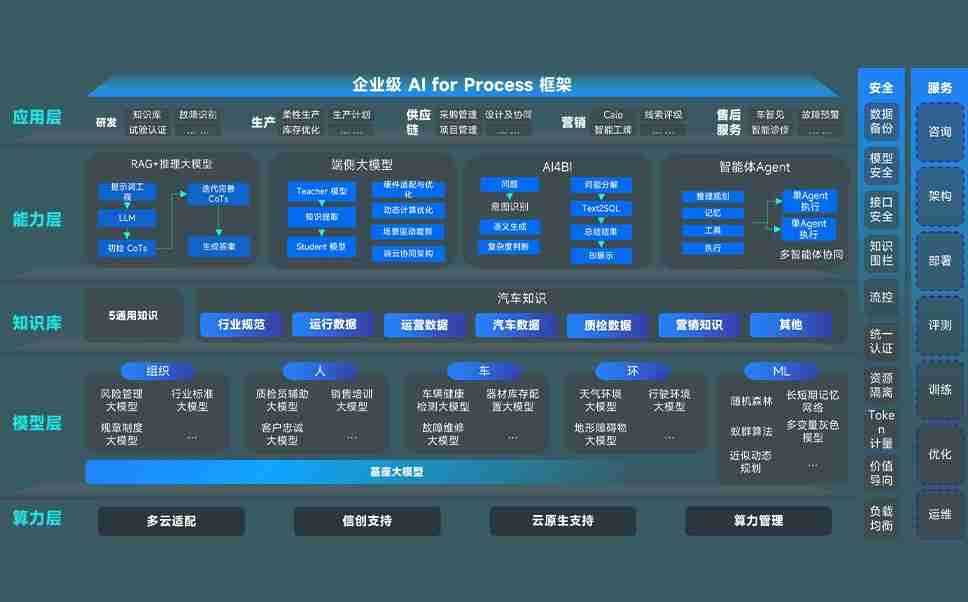 端到端的一站式AI工作空间深度融合了从企业战略规划到日常经营的全流程业务板块,,,定向解决车企内部领域多、、、部门多、、链条长、、、、场景碎片化等难题,,,,支持车企快速构建以AI为核心的生产力写作体系,,实现任务执行与AI能力的无缝集成与交互