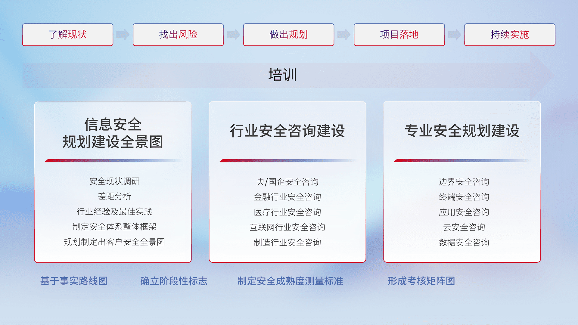 针对客户行业特性,,,将宏观的安全战略和需求,,通过专业的交付服务,,实现项目落地,,为客户提供标准规范的集成交付服务。。。